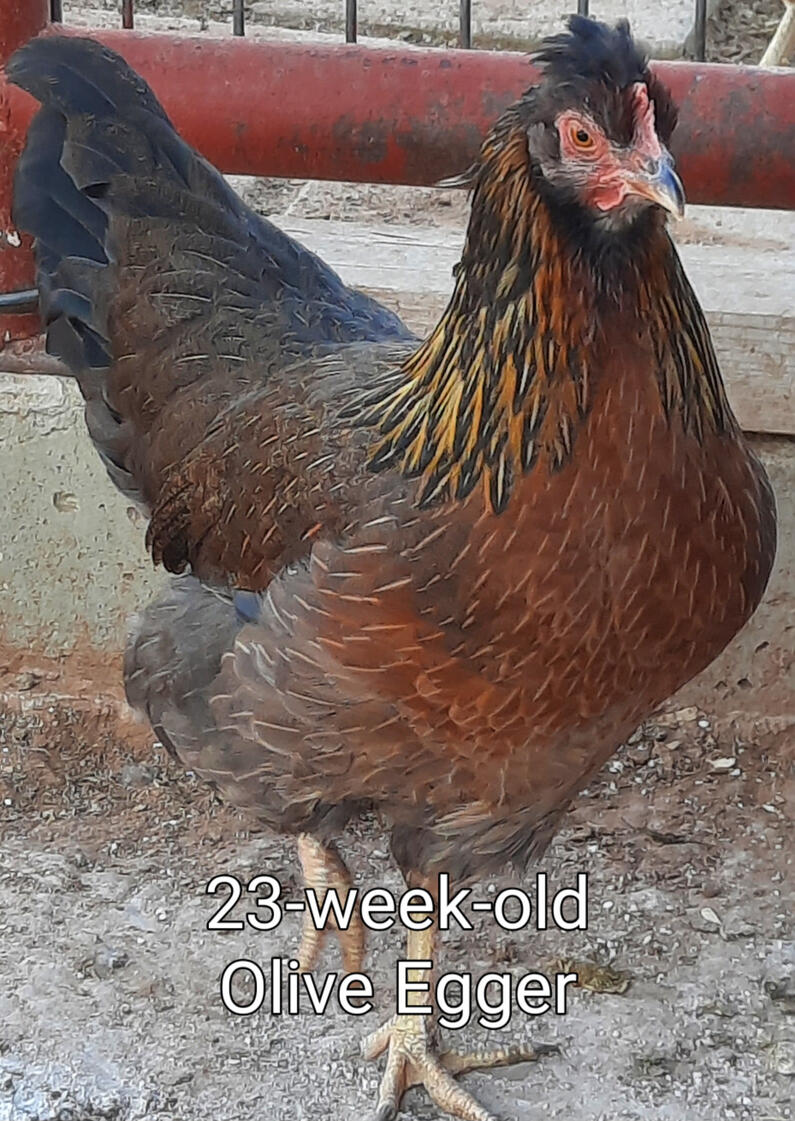 The Fiesta Red is a Rhode Island Red x Crested Cream Legbar hybrid. They are docile and prolific egg layer, laying about 220 eggs per year. That's about four to five eggs a week. Their eggs can be one of three colors, brown, mint green or olive. Like our other hens they are gentle and do well in a mixed flock. Making them a great backyard hen.