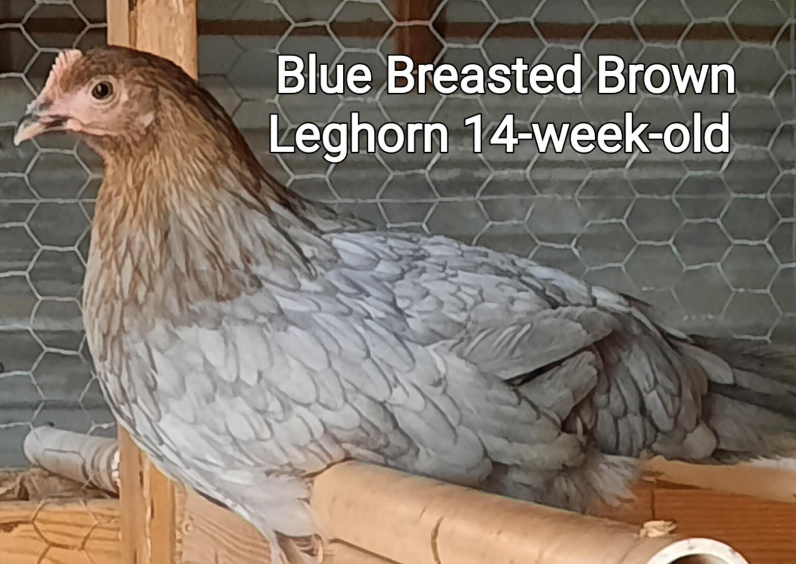 Crested Cream Legbar and White Leghorn cross, 14-week-old, $25.