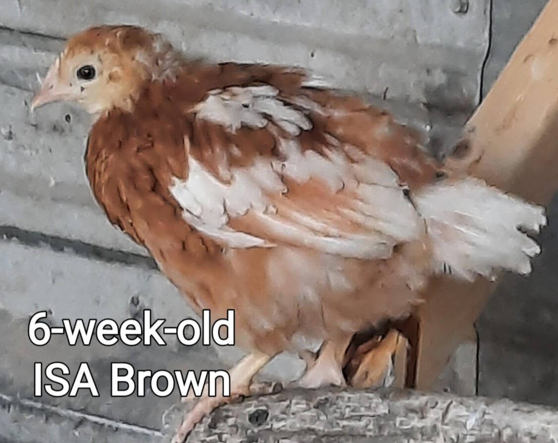 ISA Browns are a red sex-link hybrid. These chickens are the most prolific brown egg layers. They lay more eggs then any other chickens except for the White Leghorn. They have a docile temperament and they don't go broody. They start laying at 18 to 20 weeks.