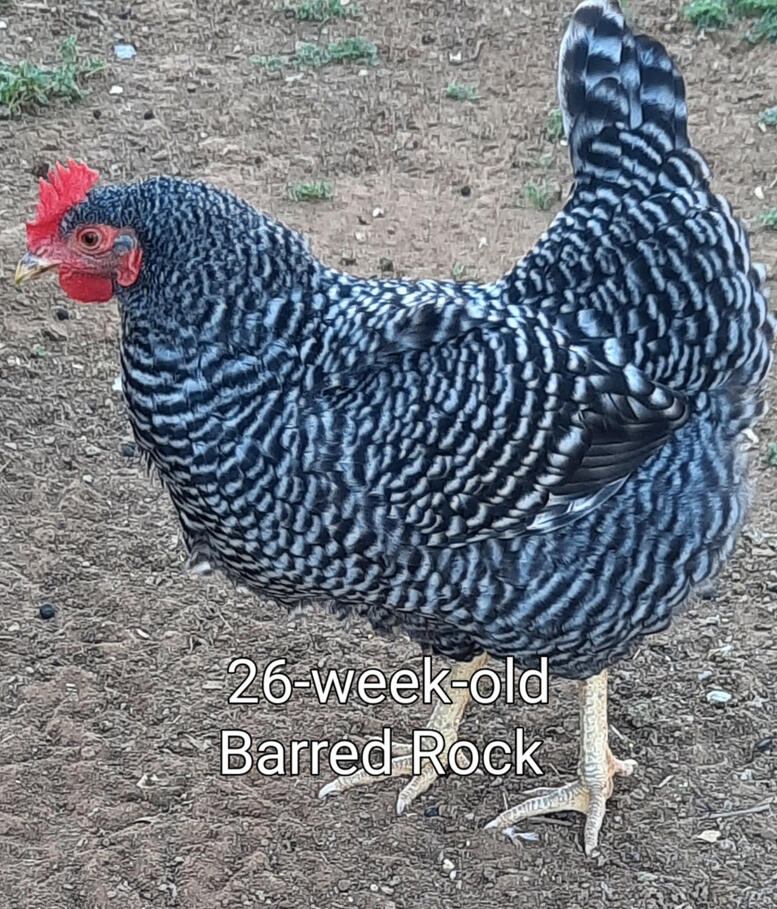 These chickens are a part of Americana. If your grandparents had chickens you can be sure some were Barred Rocks. They're a dual purpose Heritage breed chicken that lays 4 to 5 eggs a week. They start laying at 16 to 20 weeks. They're a gentle breed and do well in a mixed flock.