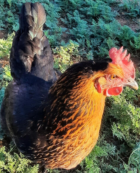 They're known as a dual-purpose sex-link hybrid that will lay large brown eggs at 20 weeks old. They're super layers, laying five to six eggs a week. They're very friendly and docile. They're always the first one to greet you, giving them the nickname "dogs with feathers". The Black Stars combination of temperment, egg size, egg quantity and their iridescent green feathers makes it one of my favorites and they could easily be called the perfect hen. Black Star are a cross breed Rhode Island Red and Barred Rock.