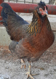 These hens are a blue sex-linked hybrid. Crossing a French Blue Marans with a Barred Rock and getting the best of both breeds. A beautiful blue hen that lays 200 to 280 eggs annually. That's more eggs then a Marans and a rich darker egg then a Barred Rock. Their egg size is large to extra large. They get their gentle temperment from both breeds.